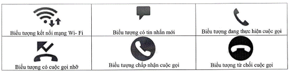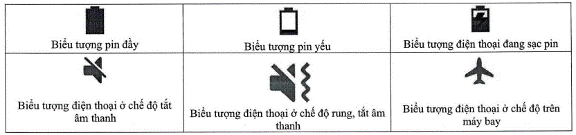 Một số biểu tượng thể hiện trạng thái và chức năng hoạt động của điện thoại.