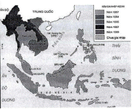 Hiệp hội các Quốc gia Đông Nam Á được thành lập ngày 8/8/1967 tại Băng cốc - Thái Lan. Khi mới thành lập, ASEAN gồm 5 nước là In-đô-nê-xi-a, Ma-lai-xi-a, Phi-lip-pin, Xin-ga-po và Thái Lan. Năm 1984 ASEAN kết nạp thêm Bru-nây Da-ru-xa-lam làm thành viên thứ 6. Ngày 28/7/1995 Việt Nam trở thành thành viên thứ 7 của Hiệp hội. Ngày 23/7/1997 kết nạp Lào và Mi-an-ma. Ngày 30/4/1999, Cam-pu-chia trở thành thành viên thứ 10 của ASEAN. Đông Timo đ ã gửi đơn xin gia nhập Asean năm 2011 và đến nay Đông Timo là nước duy nhất chưa phải là thành viên chính thức của tổ chức này.