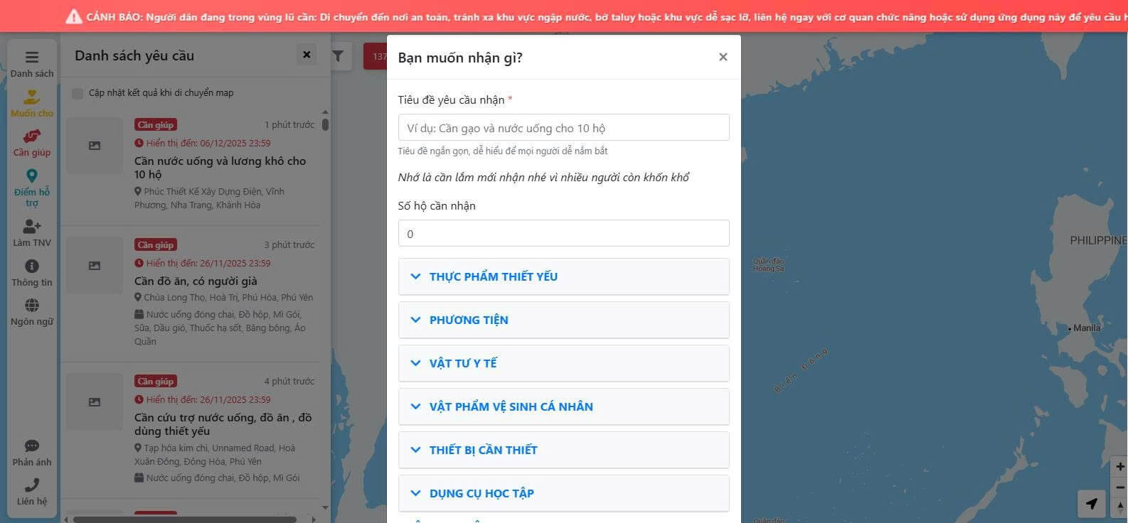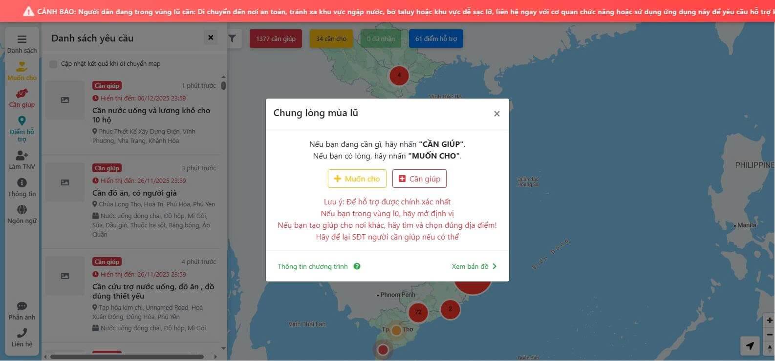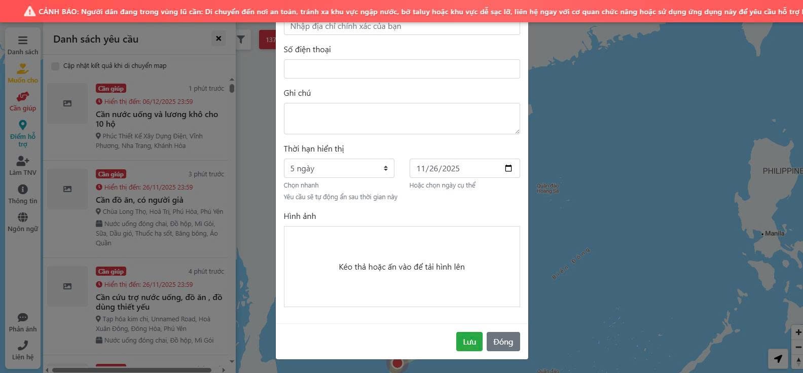 Hướng dẫn gửi yêu cầu cứu trợ người dân vùng lũ