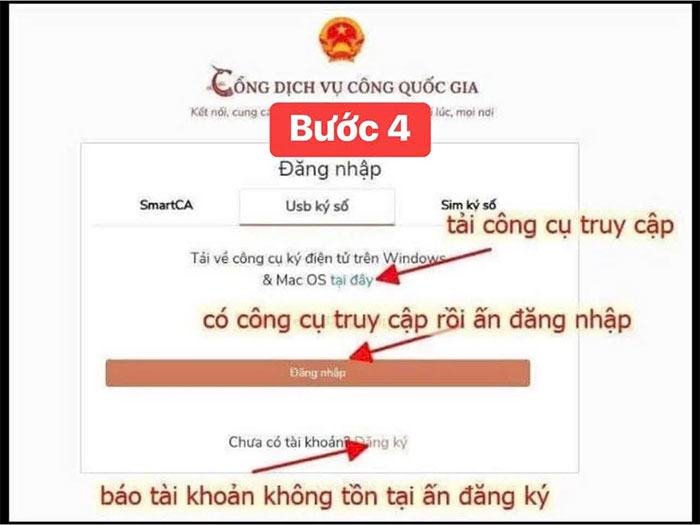 Sau khi đã cài đặt phần mềm hoàn tất thì nhấn “Đăng nhập”, trường hợp báo tài khoản không tồn tại nhấn “Đăng ký”