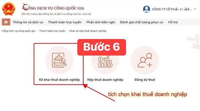 Bước 6: Nhấn chọn “Kê khai thuế doanh nghiệp”