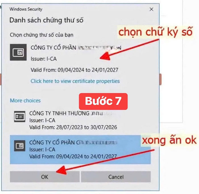 Bước 7: Tại màn hình Windows Securirty chọn “chữ ký số” rồi ấn “OK”