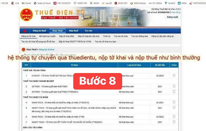 Bước 8: Hệ thống tự chuyển qua trang Thuế điện tử, doanh nghiệp thực hiện nộp tờ khai và nộp thuế như bình thường.