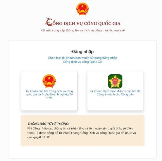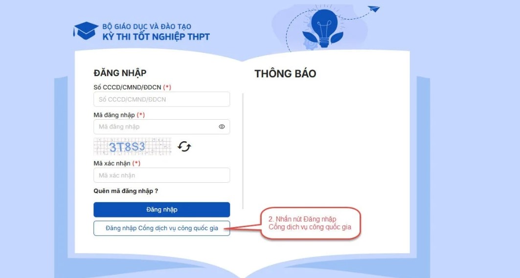 Bước 2: Thí sinh đăng nhập Cổng dịch vụ công quốc gia