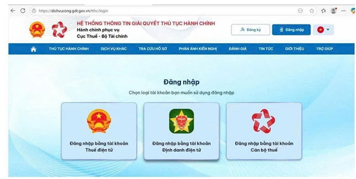 NNT lựa chọn đăng nhập bằng 1 trong 2 cách: Đăng nhập bằng tài khoản thuế điện tử hoặc tài khoản định danh điện tử.