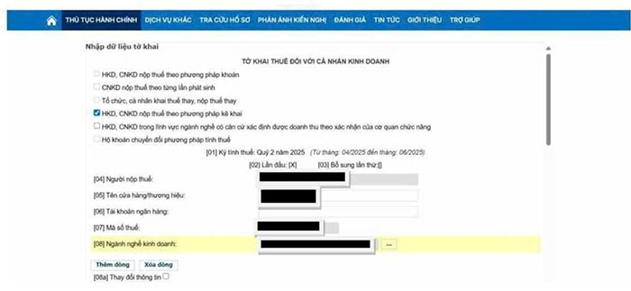 Hướng dẫn nộp tờ khai cho hộ kê khai thông qua Hệ thống thông tin giải quyết thủ tục hành chính mới nhất 2025