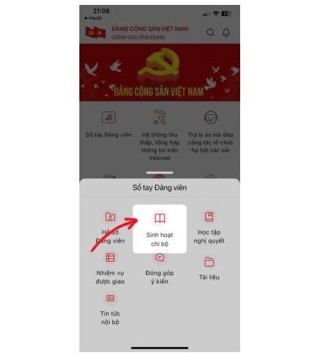 Bước 1: Chọn menu “Sinh hoạt chi bộ"