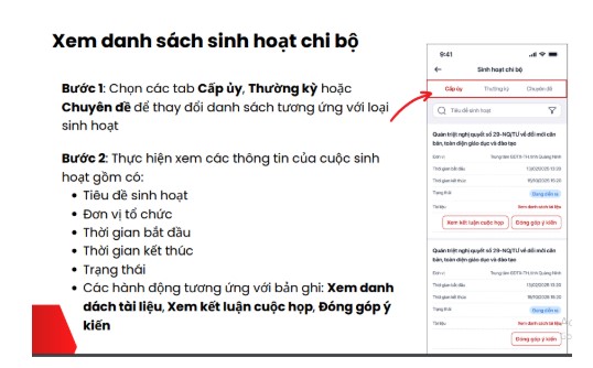 * Xem danh sách sinh hoạt chi bộ