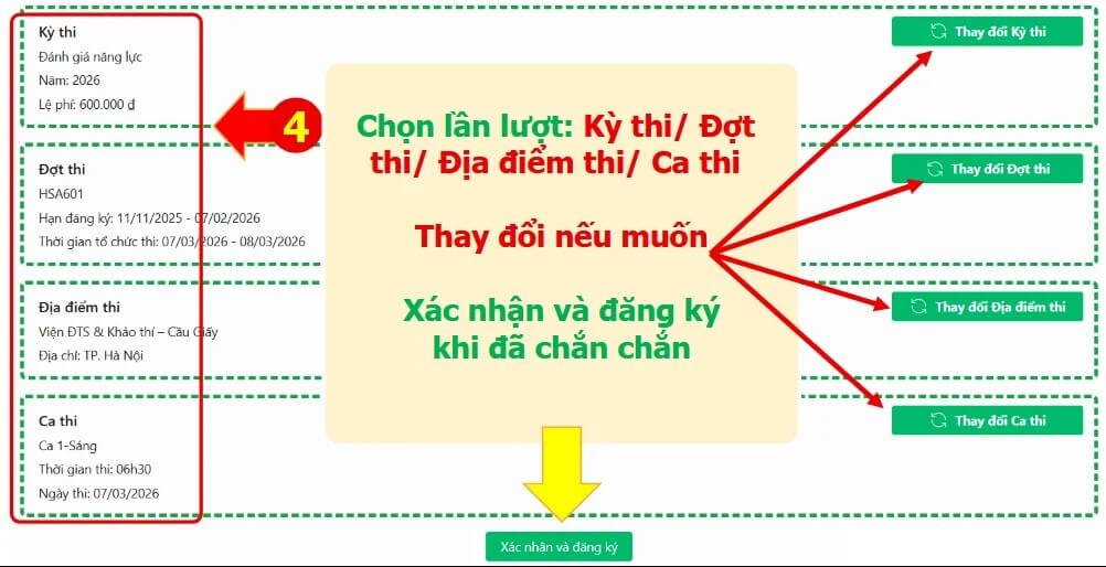 4. Hướng dẫn các bước đăng ký ca thi HSA 2026