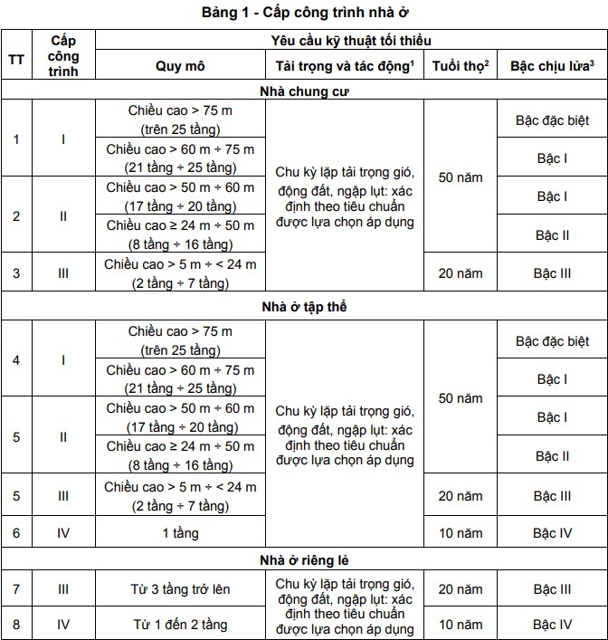 1.1.1 Quy chuẩn này quy định các yêu cầu kỹ thuật bắt buộc phải tuân thủ đối với nhà ở xây mới hoặc cải tạo lại.
