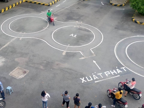 - Đối với hạng A1, A2: Người dự thi phải điều khiển xe máy qua 04 bài sát hạch: Đi theo hình số 8; Qua vạch đường thẳng; Qua đường có vạch cản; Qua đường gồ ghề.