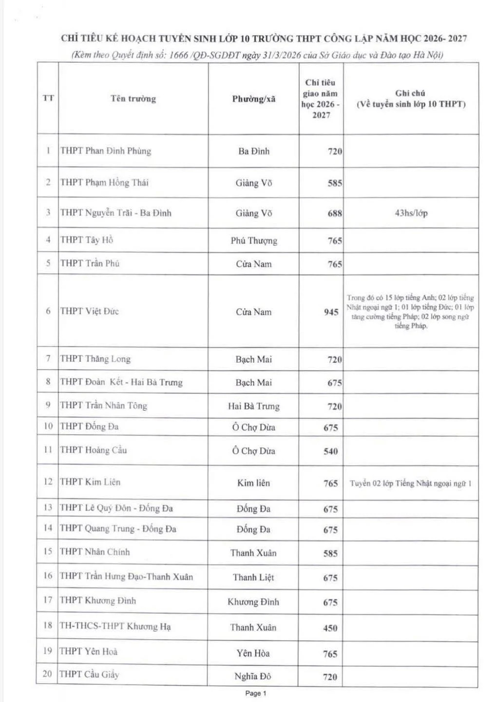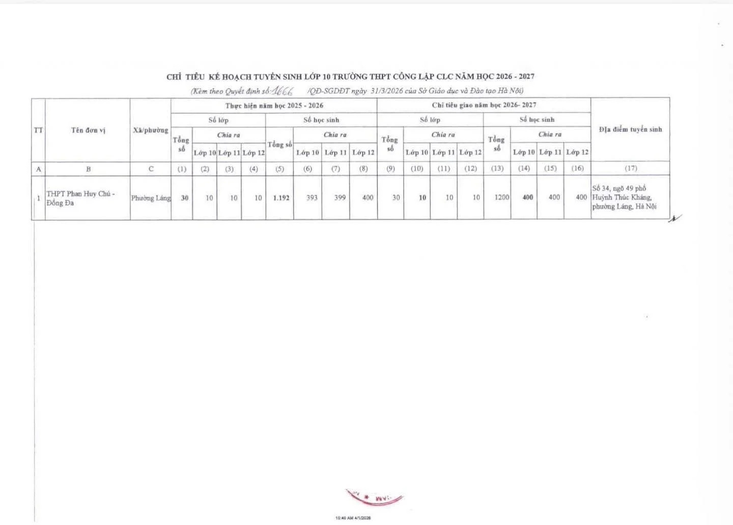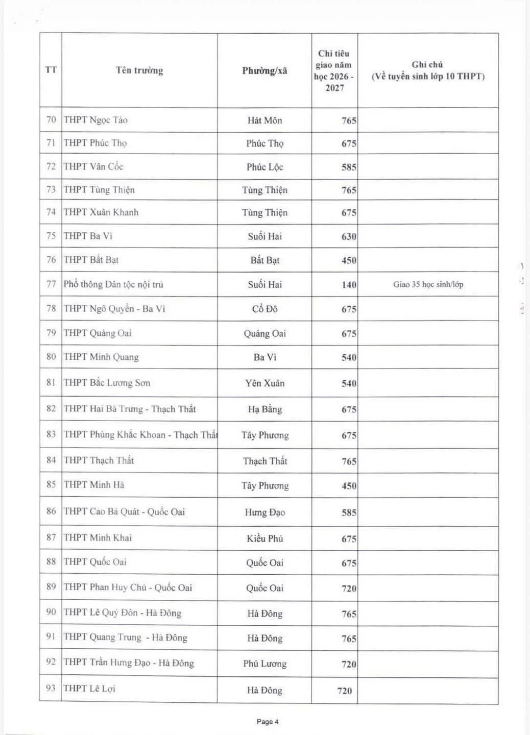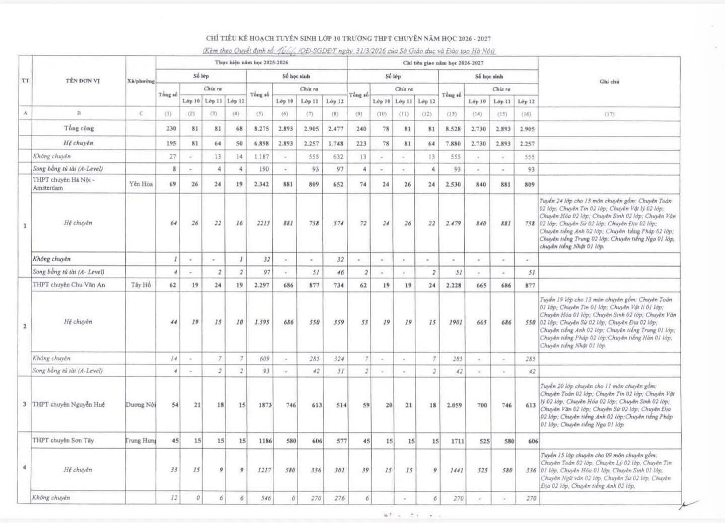 Quyết định 852/QĐ-SGDĐT về chỉ tiêu tuyển sinh lớp 10 THPT Tư thục Hà Nội 2024