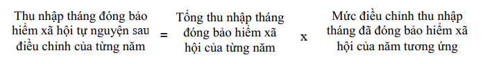 1. Thu nhập tháng đã đóng bảo hiểm xã hội đối với đối tượng quy định tại khoản 2 Điều 1 Thông tư này được điều chỉnh theo công thức sau: