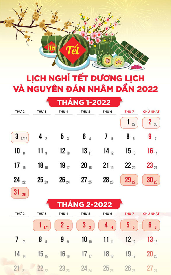 Lịch nghỉ Tết Nhâm Dần 2022 chính thức