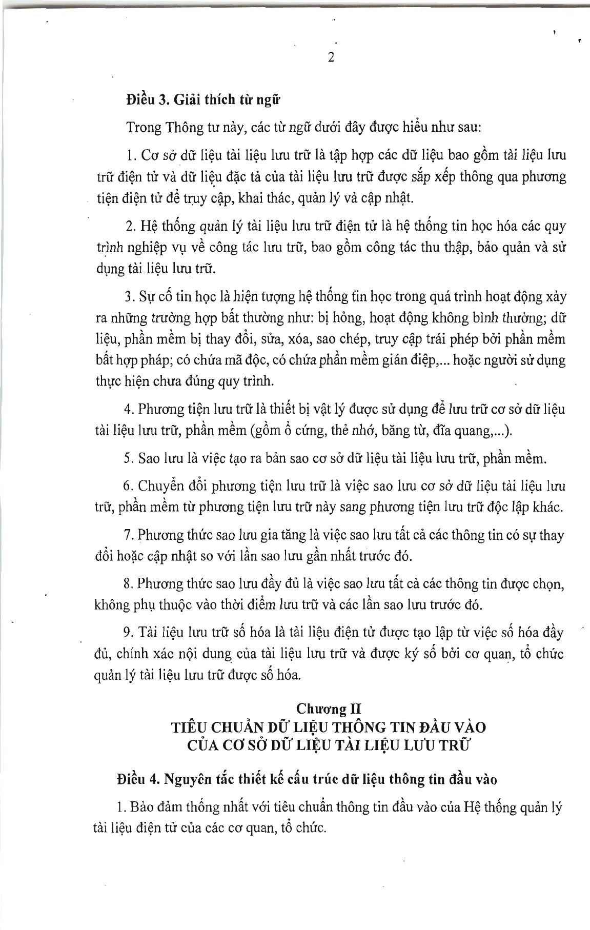 Thông tư 02/2019/TT-BNV của Bộ Nội vụ quy định tiêu chuẩn dữ liệu thông tin đầu vào và yêu cầu bảo quản tài liệu lưu trữ điện tử.