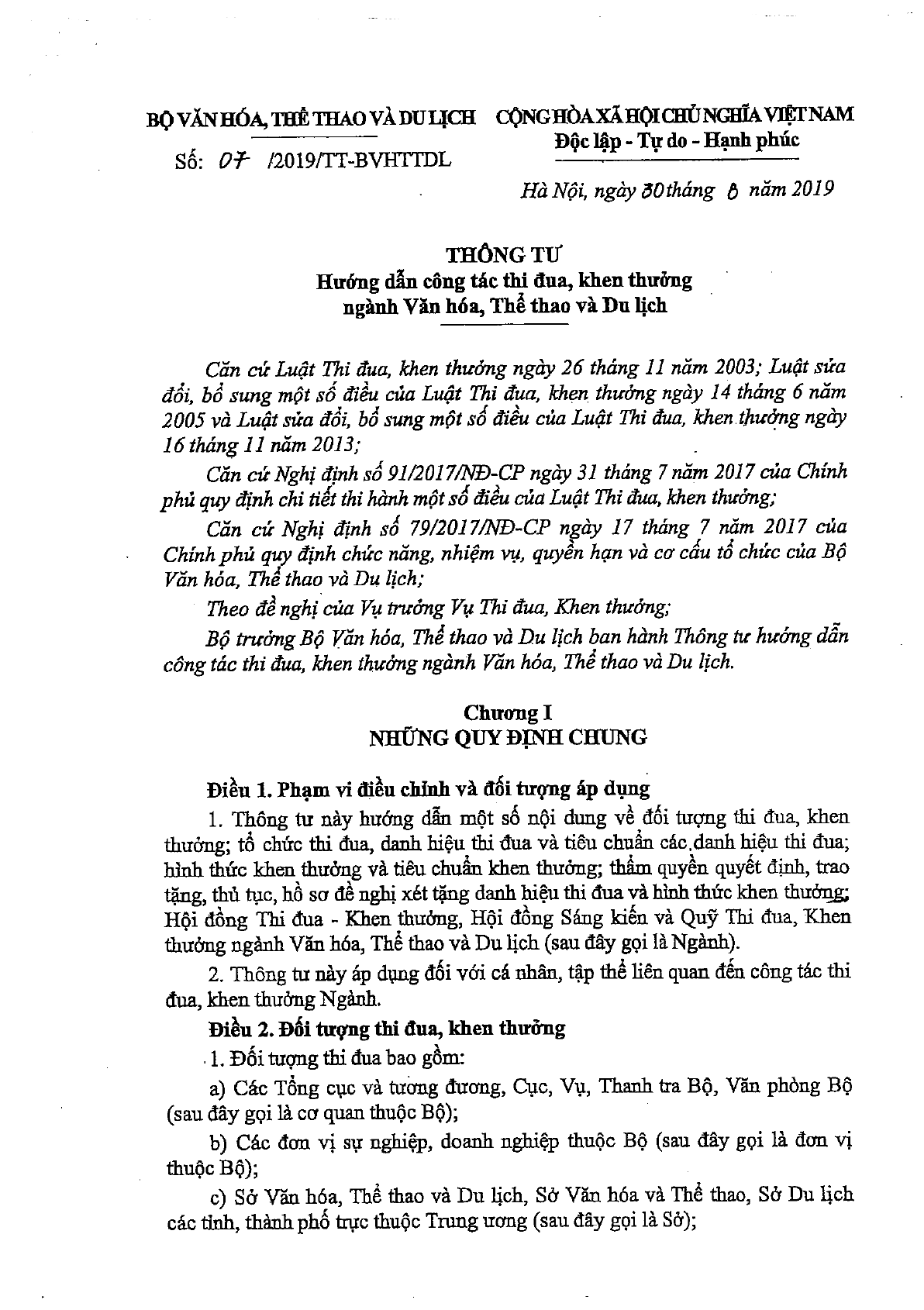 Thông tư 08/2019/TT-BVHTTDL Quy trình giám định tư pháp đối với sản phẩm văn hóa