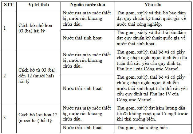 Yêu cầu về thu gom, xử lý và thải bỏ đối với các nguồn nước thải phát sinh từ công trình dầu khí trên biển