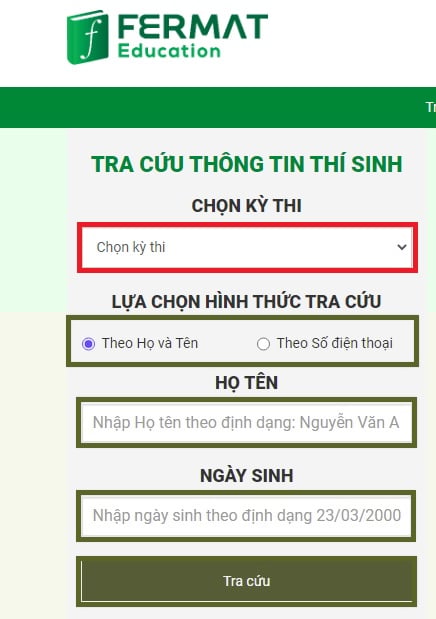 + Theo Họ và Tên: Nhập Họ và tên và Ngày sinh;