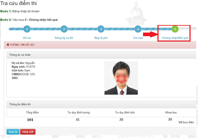 Bước 3. Chọn mục 5 – Chứng nhận kết quả.