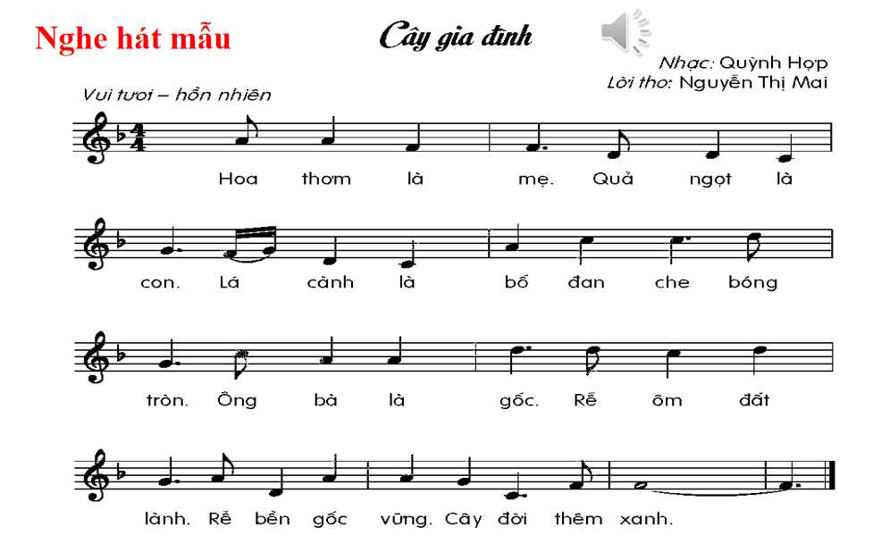 • Hát thuộc lời ca và đúng giai điệu bài hát Cây gia đình.