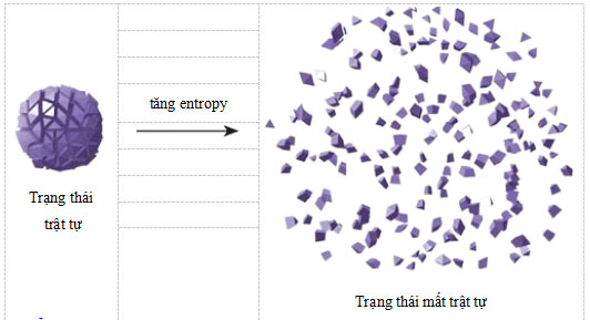 GV dẫn dắt: Các phản ứng hoá học cũng tương tự như vậy, có phản ứng tự xảy ra và có phản ứng không tự xảy ra. Các quá trình trong tự nhiên có xu hướng xảy ra theo chiều tăng độ mất trật tự (hỗn loạn) của các tiểu phân trong hệ, người ta gọi đó là quá trình tăng entropy. Entropy là gì? Entropy ảnh hưởng như thế nào đến chiều hướng diễn biến của phản ứng hoá học?