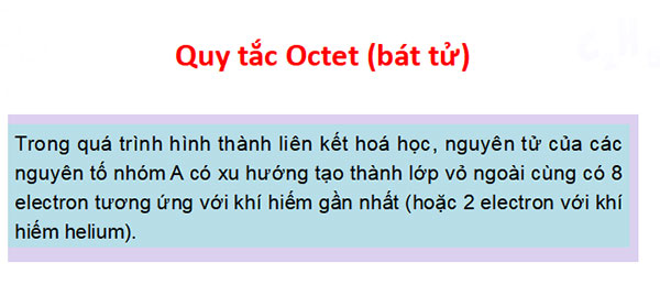 Câu 2: Theo quy tắc octet, khi hình thành liên kết hóa học, các nguyên tử có xu hướng nhường, nhận hoặc góp chung electron để đạt tới cấu hình electron bền vững giống như