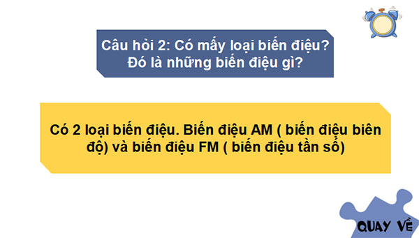 => Có 2 loại biến điệu. Biến điệu AM ( biến điệu biên độ) và biến điệu FM ( biến điệu tần số)