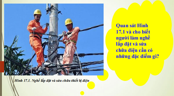 Quan sát Hình 17.1 và cho biết người làm nghề lắp đặt và sửa chữa điện cần có những đặc điểm gì?
