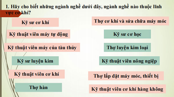 1. Hãy chỉ ra trong những nghề dưới đây, nghề nào thuộc lĩnh vực kĩ thuật điện?