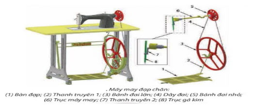 Quan sát Hình dưới đây và liệt kê các bộ biến đổi chuyển động của máy may đạp chân?