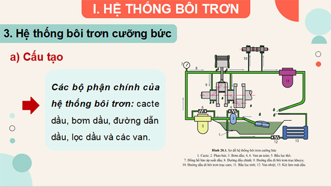 Giáo án PowerPoint Công nghệ 11 Bài 20: Hệ thống bôi trơn và hệ thống làm mát được thiết kế hiện đại, tích hợp hình ảnh, hiệu ứng trình chiếu đẹp mắt với nhiều bài tập ôn tập, mở rộng kiến thức phong phú.