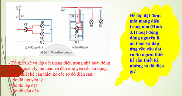 + Mô tả được các bản vẽ sơ đồ nguyên lí và sơ đồ lắp đặt mạng điện trong nhà.