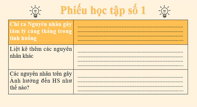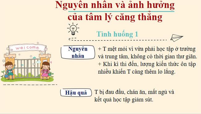 B. Hoạt động hình thành kiến thức I. Khám phá 1. Các tình huống gây căng thẳng và biểu hiện của cơ thể khi bị căng thẳng