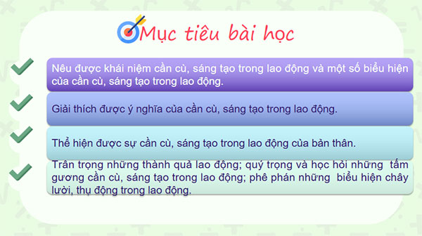 - Giải thích được ý nghĩa của cần cù, sáng tạo trong lao động.