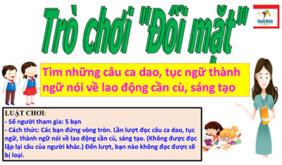 1. Hoạt động 1: Khởi động (Mở đầu) a. Mục tiêu: - Tạo được hứng thú với bài học. - Học sinh bước đầu nhận biết về lao động cần cù, sáng tạo để chuẩn bị vào bài học mới. Bạn nào đọc được nhiều hơn sẽ thắng. - Phát biểu được vấn đề cần tìm hiểu: Cần cù, sáng tạo trong lao động? Biểu hiện của cần cù, sáng tạo trong lao động? Giải thích được một cách đơn giản ý nghĩa của cần cù, sáng tạo trong lao động. b. Nội dung: Giáo viên hướng dẫn học sinh tiếp cận với bài mới bằng trò chơi “Đối mặt”
