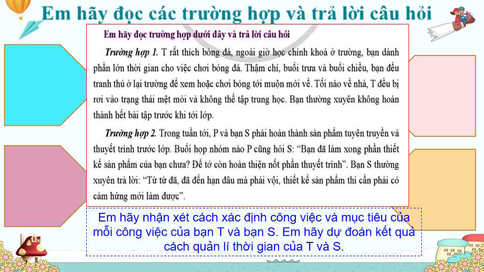 - Nhận biết được sự cần thiết phải quản lí thời gian hiệu quả.