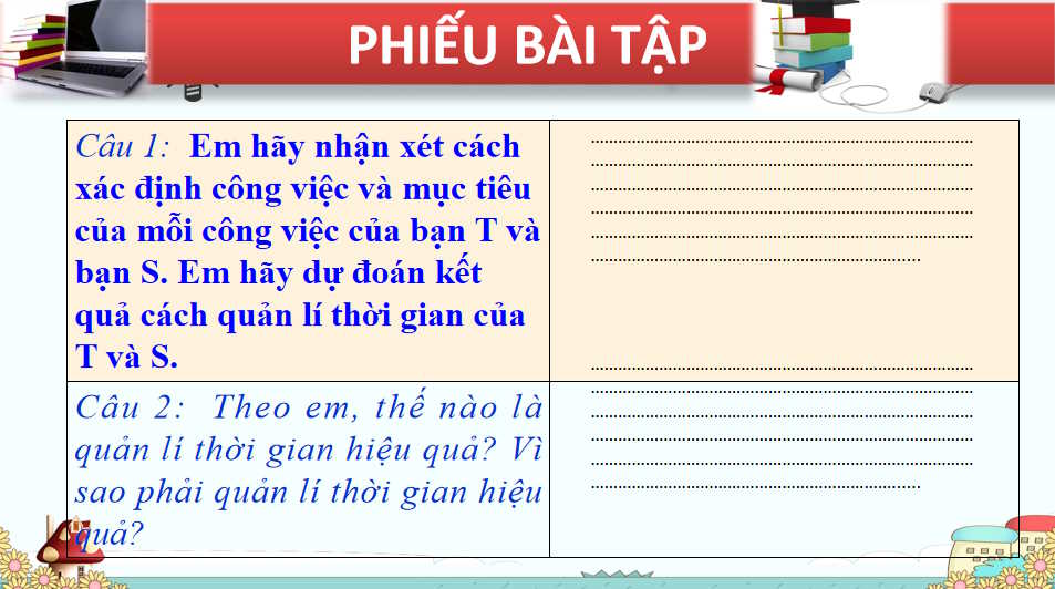 - Nêu được cách quản lí thời gian hiệu quả.
