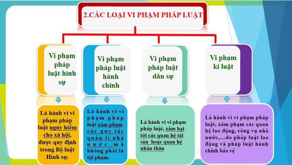 - Nêu được khái niệm vi phạm pháp luật và trách nhiệm pháp lí; các loại vi phạm pháp luật và trách nhiệm pháp lí.