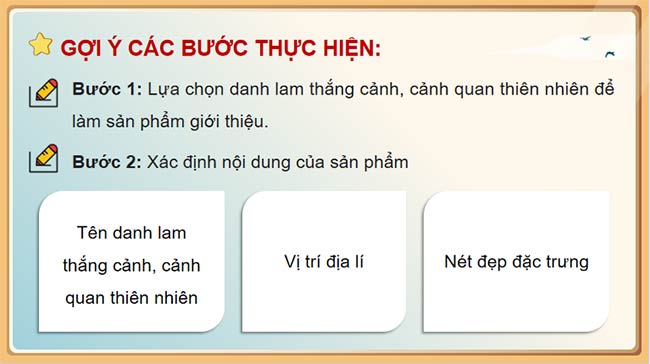 Hoạt động 1: Tìm hiểu về cách thiết kế sản phẩm giới thiệu vẻ đẹp danh lam thắng cảnh,