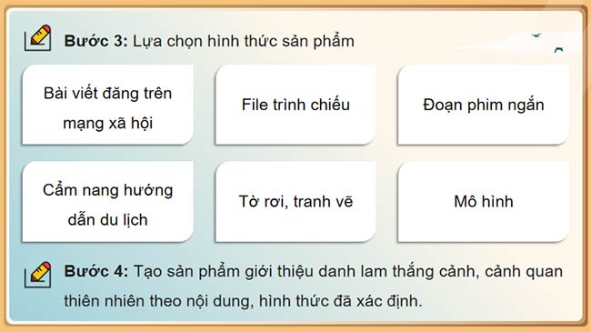 - Thiết kế được sản phẩm thể hiện vẻ đẹp danh lam thắng cảnh, cảnh quan thiên nhiên của đất nước.
