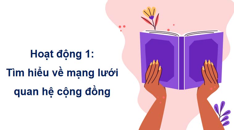 + Trình bày/ giới thiệu vể mạng lưới quan hệ cộng đổng đang tham gia: lịch sử hình thành mạng lưới; mục đích hoạt động; các thành viên tham gia và đặc điểm của những thành viên này; cách thức hoạt động của mạng lưới; những lợi ích mà hoạt động của mạng lưới quan hệ cộng đồng đem lại cho cộng đồng, xã hội; hoạt động của mạng lưới mà HS có thể tham gia.