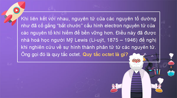 a. Mục tiêu: Giúp HS xác định được nhiệm vụ tìm hiểu về sự hình thành liên kết giữa các nguyên tử, quy tắc octet.