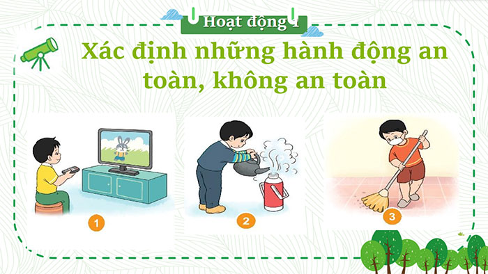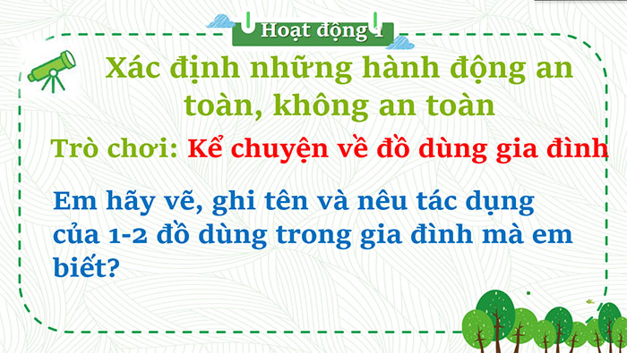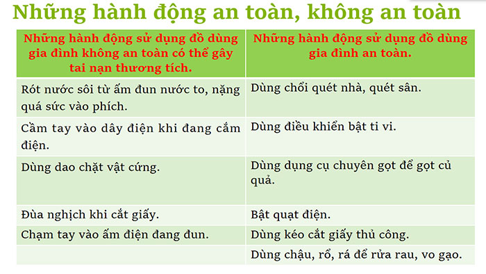 • Phân biệt được hành động an toàn và không an toàn khi sử dụng đồ dùng trong gia đình.