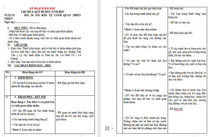 • Học sinh: Nhớ lại các bài hát liên quan đến thiên nhiên đã học ở môn Âm nhạc.