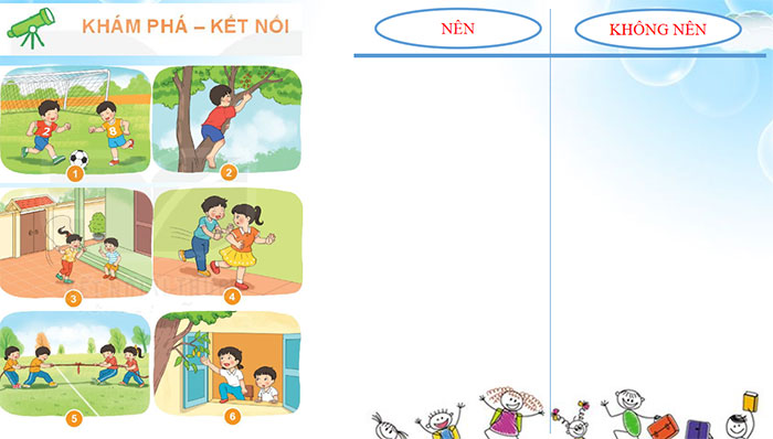 • Nêu được những việc nên làm và không nên làm để đảm bảo vui chơi an toàn;