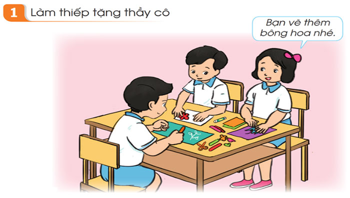 • Biết một hình thức thể hiện tình cảm của bản thân để tỏ lòng biết ơn thầy cô, đó là trang trí Cây tri ân bằng những bông hoa, tấm bưu thiếp tự làm với những lời hay, ý đẹp về thầy cô.