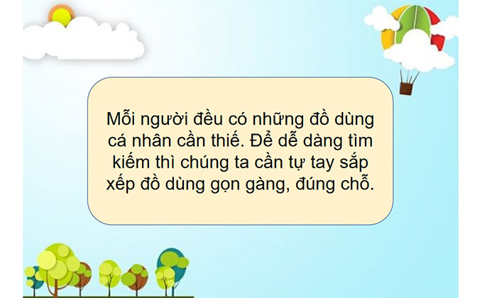 Giáo án PowerPoint Hoạt động trải nghiệm lớp 1: Sắp xếp đồ dùng của em