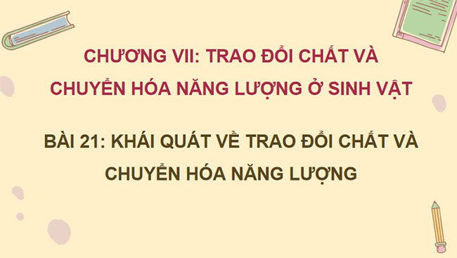 - Bài 21: Khái quát về trao đổi chất và chuyển hóa năng lượng