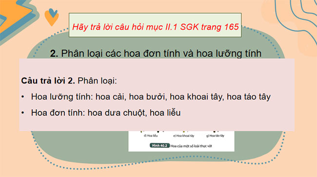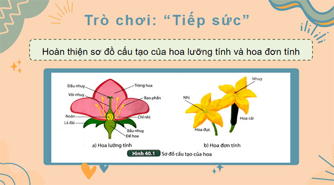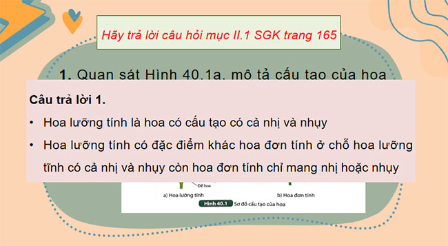 - Mô tả được cấu tạo của hoa lưỡng tính, phân biệt được hoa đơn tính và hoa lưỡng tính