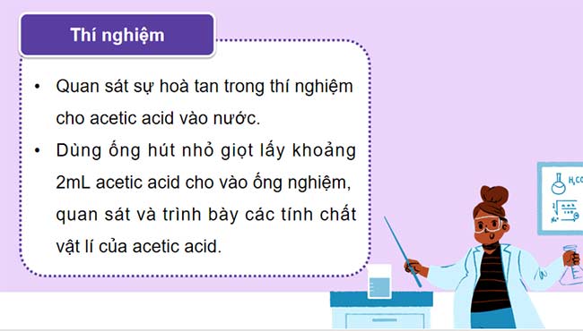 + Sử dụng ngôn ngữ khoa học để diễn đạt về acetic acid